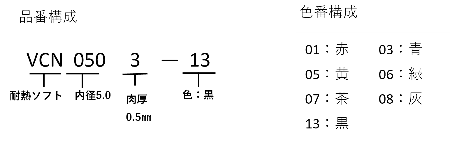 | 耐熱性ソフトチューブ | 高温部仕様/柔軟性/省スペース取り回し | -30℃~105℃ |