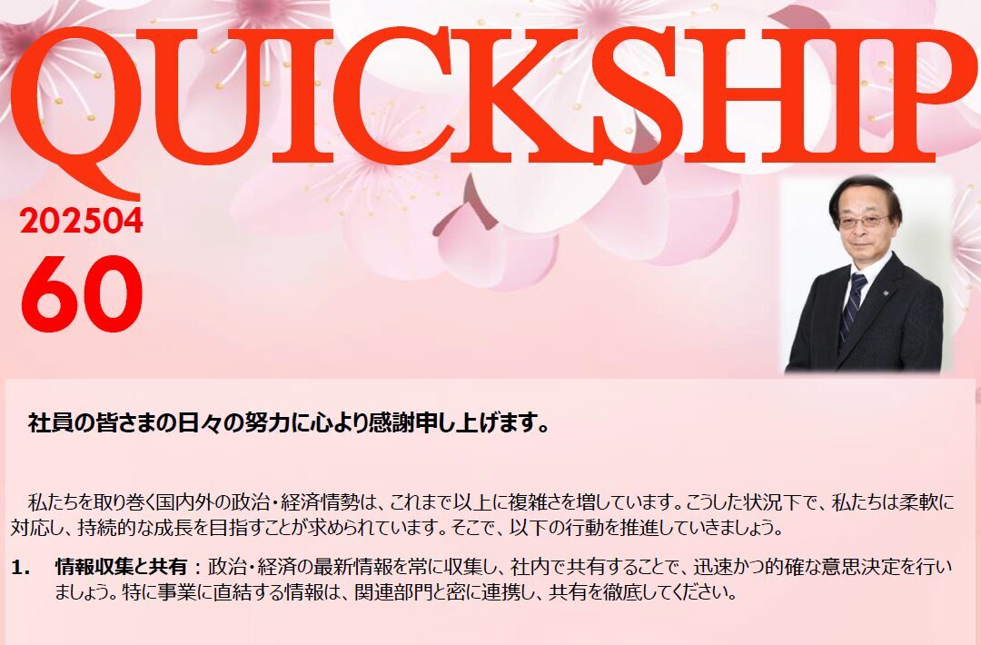 季刊誌 Quickship 2025年4月 第60号 発刊 2025.04.01 ニッセイエコ季刊誌クイックシップ 2025年4月 第60号発刊です。ぜひご覧ください。 QuickShip 60号ダウンロード Quick Shipバックナンバーへ Post Share Hatena 投稿者: Tommy季刊誌 Quickship 2025年1月 第59号外 発刊 Quickship 2025年7月 第61号 発刊